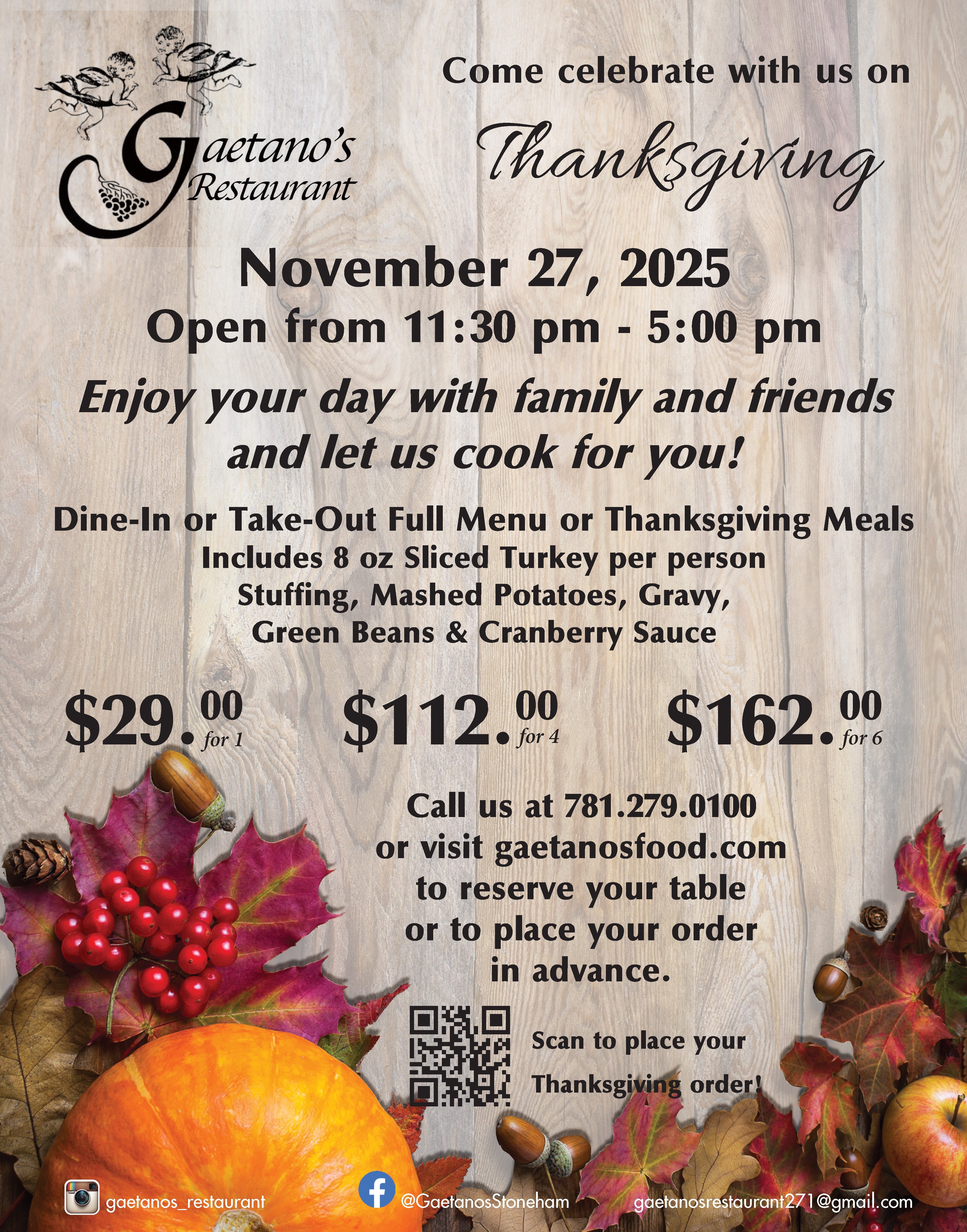 Since 1995, Gaetano’s has been serving authentic Italian dishes in a warm, friendly environment. Come join us for the best Italian food north of Boston. Open daily for lunch and dinner. Free on-site parking behind the restaurant off Flint Avenue.